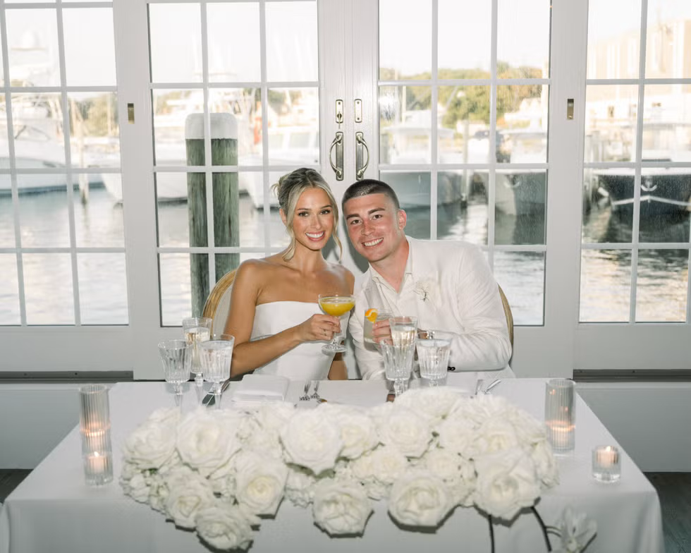 While some celebrity weddings emphasize timeless luxury, others become highly curated visual events shared across social media. Emma MacDonald, a YouTuber known for documenting her lifestyle as a Boston-based influencer, built an audience by sharing everything from workouts to daily routines. When she married Boston Celtics player Payton Pritchard, that openness continued, as she documented the entire process on her YouTube channel. The wedding took place at Wychmere Beach Club in Cape Cod, aligning with Emma’s coastal New England aesthetic. She wore a Vera Wang gown featuring a corset bodice and dramatic tulle skirt. Naturally, fans tuned in to follow every detail of the event, turning each outfit and moment into content. While minimalism is a major trend in bridal fashion right now, wedding dresses can still be timeless without feeling overly simple. In my opinion, Emma’s gown achieved that balance perfectly.
